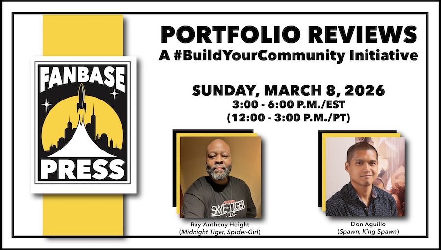 Last year, GLAAD Award-winning and Eisner-nominated publisher and media outlet Fanbase Press celebrated its 15th anniversary with the launch of the “Build Your Community” Initiative: a series of in-person and virtual opportunities for connection and skill building to navigate a collective path forward. To continue in the practice of supporting our community and providing opportunities for connection and skill building, Fanbase Press will be launching its first-ever virtual Portfolio Review sessions, conducted by critically acclaimed artists including Ray-Anthony Height (Midnight Tiger, Spider-Girl) and Don Aguillo (Spawn, King Spawn).
