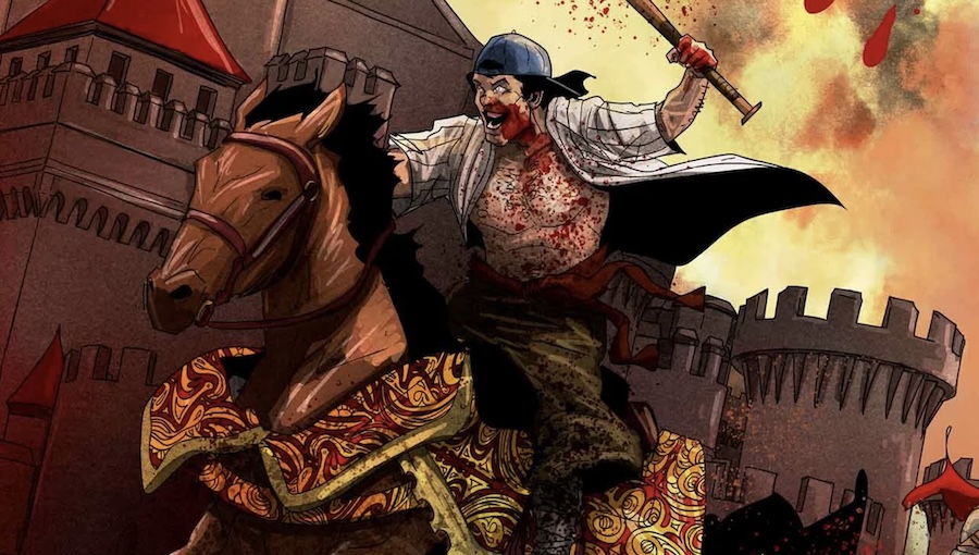 Neil Kleid: Absolutely, thanks. The origins of Medieval are really two-fold: First, after penning two emotionally-heavy, dark, grounded series for Comixology (The Panic and Nice Jewish Boys), I was really looking to write something that came from my gut versus my head—something visceral and fun and let me stretch myself creatively into areas I hadn’t gone before. At first, I thought about writing a superhero or a horror story…but then I read Mark Twain’s A Connecticut Yankee in King Arthur’s Court, and accidentally transposed “Connecticut” with “New York,” and well…I realized that what I was after was actually a fun, over-the-top sports comic with a twist.
