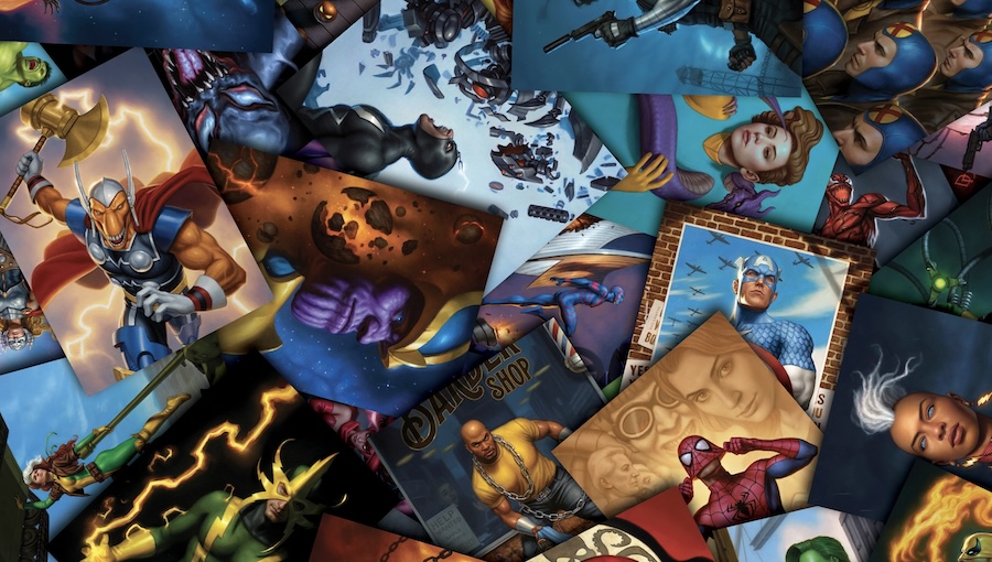 Dan Dos Santos: It’s been pretty fantastic! The majority of work in this book comes from a massive Marvel trading card set that I created. Painting that set was SO much work, that for a long time it was hard not to associate the art with the laborious experience of creating it all. But now that I see it all collected in this beautiful volume, I can see the work much more objectively, more like a fan than it’s creator, and actually enjoy it for the first time.