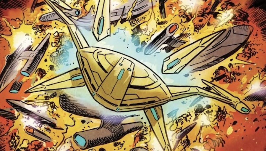 What I wasn’t expecting to enjoy as much as I did were the new cast members introduced in this issue. The issue is primarily told through the eyes of Captain Delacourt Sato, one of the few surviving Captains in Starfleet. And yes, he is a descendant of Hoshi Sato and Ensign Sato from Jackson and Lanning’s Star Trek series. Sato is the rock that the Federation desperately needs as he refuses to just accept the whims of fate and let the Federation die. Sato is even willing to make a dangerous bargain to ensure its survival. Sato will be joined by his former first officer Wowie, his former helmsman and a Klingon officer looking to discover her new path. There are a lot of other interesting aspects of this new status quo and time period that I’ll leave for readers to discover on their own. Of course, The Last Starship can’t end without introducing us to our new vessel, the U.S.S. Omega, and its mission: to make it known throughout the galaxy that the Federation is still there and ready to help. A beacon of hope.