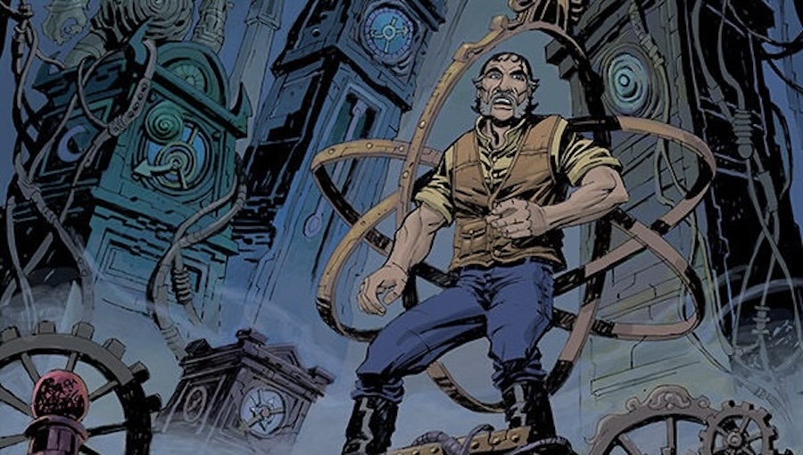When a routine dealing with a client’s recently departed relative turns into a battle with a giant ghost snake, the technology Captain Henry wears and wields goes haywire, transporting him to… It’s not entirely clear yet. Some sort of post-apocalyptic, Steampunk junkyard. We get a good look at the world he finds himself in, but not really any information about it just yet.
